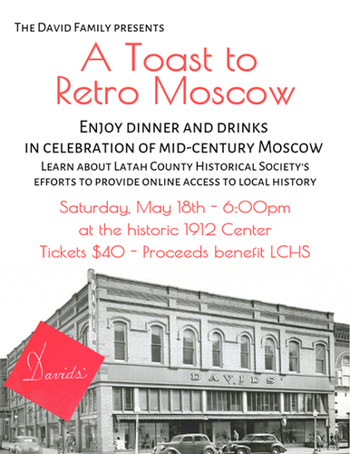 What was your favorite thing about Moscow in the 1950s and 1960s? Maybe it was shopping at Davids' Department Store? Or perhaps it was sipping on a milkshake at Tip Top Cafe? How about taking in a picture at the Varsity Drive-In Theatre on the Moscow-Pullman Highway? Whether you grew up here or you simply appreciate the charm of a bygone era, the David Family invites you to celebrate Moscow's history with a fun and casual dinner on Saturday, May 18 at 6:00pm. Guests will be treated to a retro-inspired menu of gourmet burgers and sides. Explore the Latah County Historical Society's historic photo collection while sipping on craft beers and wines. Learn more about the Society's ongoing work of preserving local history and how modern technology is making those records accessible from anywhere.