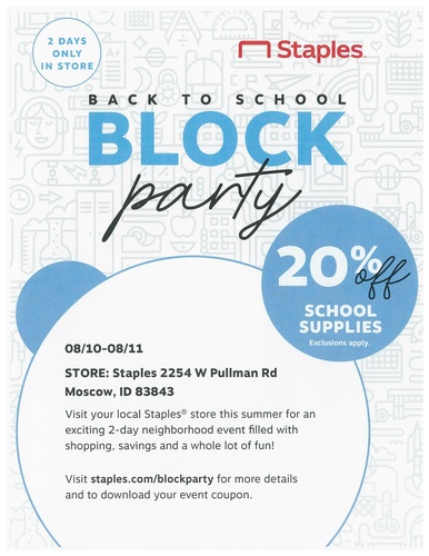 Visit staples.com/blockparty for more details and to download your event coupon.