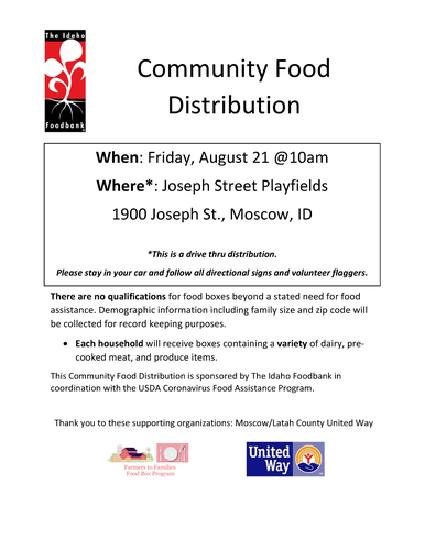 This Community Food Distribution is sponsored by The Idaho Foodbank in coordination with the USDA Coronavirus Food Assistance Program.