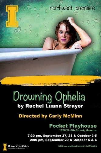 Presented by U of I Theatre Arts, "Drowning Ophelia" is a dark comedy performed in one act about the long-term consequences of childhood abuse and a love letter to those who have suffered. There is always hope. Jane doesn't know what to do with the literary character who has taken up residence in her bathtub. She doesn't want Ophelia interrupting the obsessive order of her life with obnoxious songs about death and valentines. She doesn't want Ophelia disrupting her relationship with Edmund, the oddly charming actor who might show up for dinner in a suit...or a suit of armor. And she most definitely doesn't want Ophelia stirring up memories of a brother she would rather forget. But Ophelia doesn't care about what Jane wants so much as what she needs. As Jane's past intrudes dangerously on her present, it becomes clear that Ophelia is not simply a character from "Hamlet" but a long-forgotten messenger with a question from Jane's own troubled mind: How do you move on when reconciliation is not an option?