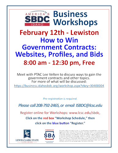Free. Pre-registration is required - please call 208-792-2465 or email ISBDC@lcsc.edu.