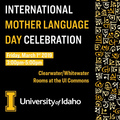 On behalf of UIdaho International Mother Language Day Celebration Committee, all students, stuff and all community members of Moscow and Pullman are invited to participate in University of Idaho's first ever International Mother Language Day Celebration. International Mother Language Day was originally observed in February, 2000 by the United Nations, and has spread across the world as a way to promote linguistic and cultural diversity and multilingualism.
