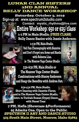 4:30pm-5:30pm: Skirt Dancing with Dannette Flores and Intro to Turkish Roman (Gypsy) Dance with Naomi Taus.