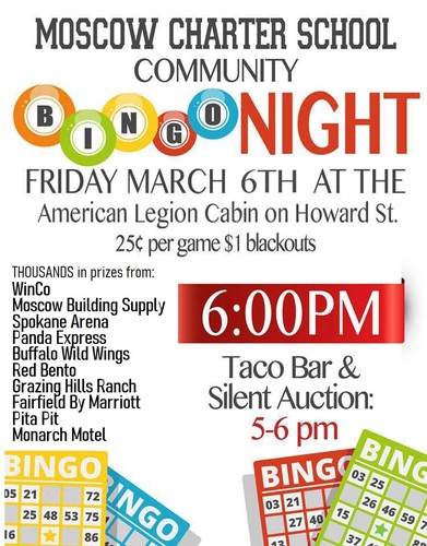 Come and support the Moscow Charter School while enjoying tacos and bingo!