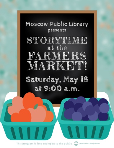 Families with children are invited to join Moscow Public Library for a very special all-ages storytime at the Moscow Farmers Market! Stacie and Bailey will present a fun, interactive Storytime on the stage on Saturday, May 18 at 9:00am followed by an activity.