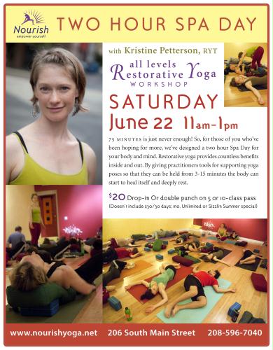 75 Minutes is just never enough! So, for those of you who've been hoping for more, we've designed a two hour spa day for your body and mind. Restorative yoga provides countless benefits inside and out. By giving practitioners tools for supporting yoga poses so that they can be held from 3-15 minutes, the body can start to heal itself and deeply rest.
