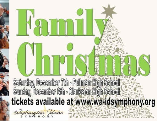 The Washington Idaho Symphony is bringing back the Family Christmas Concert! This will be a great opportunity to bring out the family and listen to some holiday classics. Along with special treats for the kids and festive decorations. Come celebrate the holidays with the Washington Idaho Symphony!